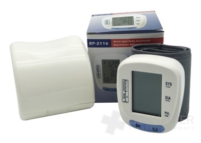 Automatisches digitales Handgelenk-Blutdruckmessgerät, Modell 01003041. Das Gerät ist für die nicht-invasive Messung des systolischen und diastolischen Blutdrucks und der Herzfrequenz mithilfe der oszillometrischen Methode vorgesehen.