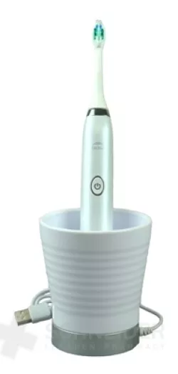 Elektrische Schallzahnbürste. Dank der patentierten Sonic-Bleaching-Technologie und dem speziellen Bürstenkopf, der Zahnstein sanft entfernt, sind die Zähne sauberer und gesünder. Verschiedene Betriebsmodi des Gerätes ermöglichen es, die Bürste an die individuellen Bedürfnisse des Benutzers anzupassen. Das intelligente Zeitsystem sorgt für eine optimale Putzzeit.