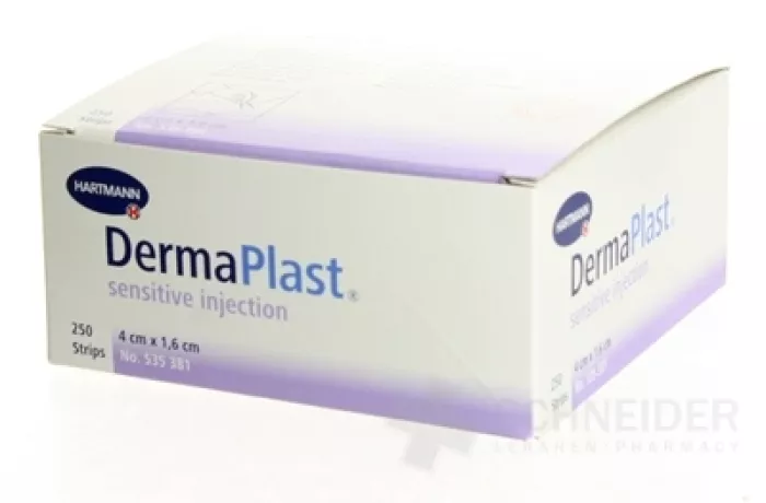 Individuell zugeschnittene Vliesstoff-Patches. Durch den streifenförmigen Auftrag von Synthesekautschukkleber sind die Pflaster atmungsaktiv. Die perforierte Abdeckfolie schützt das Wundkissen bis zum Zeitpunkt der Anwendung vor Verunreinigungen. Auch für empfindliche Haut geeignet. Die Packung enthält 250 Pflaster mit den Maßen 40 x 16 mm.