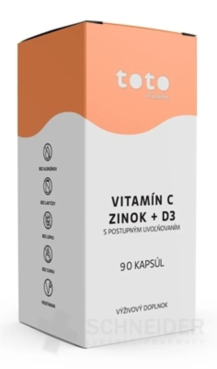 Nahrungsergänzungsmittel mit allmählicher Freisetzung. Enthält eine Kombination aus Vitamin C, Vitamin D3 und Zink.