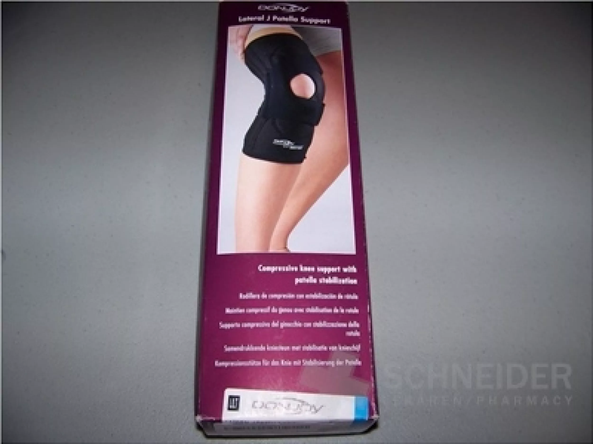 Medizinisch - orthopädisches Hilfsmittel mit Fixierungseffekt. Anatomisch geformt für das linke Knie. Es besteht aus einem speziellen atmungsaktiven Material, das die Haut frei atmen lässt. Die Verwendung: