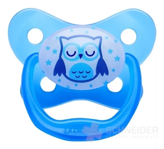 - Patentiertes Schnullerdesign mit Kanal, entwickelt in Zusammenarbeit mit Kinderzahnärzten.