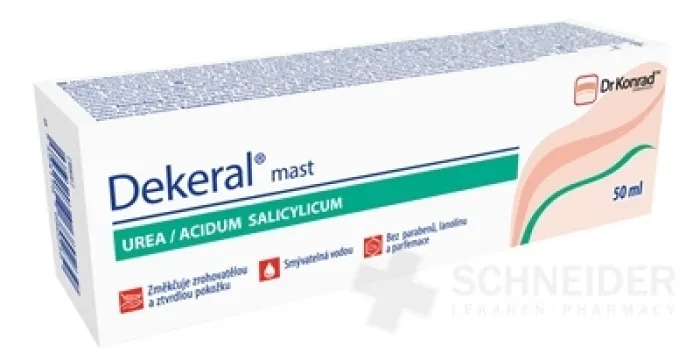 Kosmetisches Produkt. Die Salbe enthält eine Kombination aus zwei Wirkstoffen, Harnstoff (20 %) und Salicylsäure in einer ambiphilen, mit Wasser auswaschbaren Salbengrundlage.