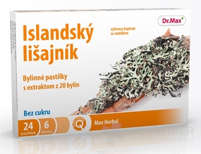 Nahrungsergänzungsmittel mit Süßstoff. Kräuterpastillen mit einem Extrakt aus dem isländischen Blister, einem Extrakt aus einer Kräutermischung und Vitamin C.