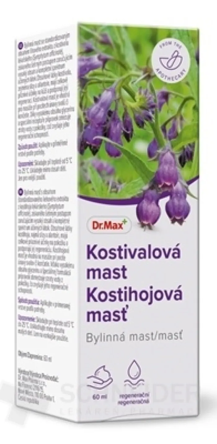 Kräutersalbe mit einem standardisierten alkoholischen Extrakt aus Beinwell ( Symphytum officinale ). Die Inhaltsstoffe des Beinwells, insbesondere Schleimstoffe und Allantoin, wirken sich insgesamt wohltuend auf die Haut aus und unterstützen ihre Regeneration. Kostihojov-Salbe eignet sich für Massagen bei müden Muskeln oder Gliedmaßen. Dank des hohen Glyceringehalts und der speziellen Formulierung begrenzt das Präparat den Wasserverlust der Haut und erhöht so ihre Regenerationsfähigkeit.