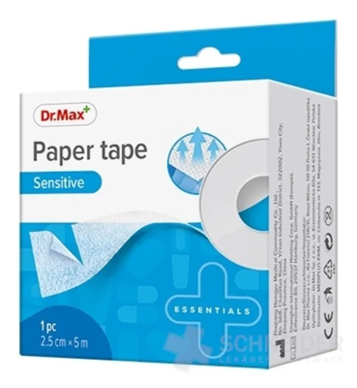 Papierband zum Fixieren von Verbänden an der vorgesehenen Stelle. Geeignet für empfindliche Haut. Es kann zerrissen werden. Atmungsaktiv.
