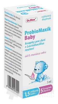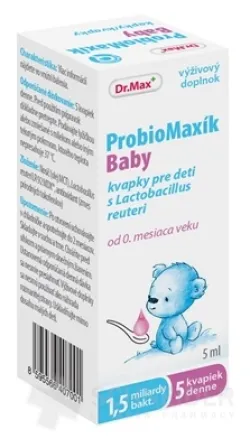 Nahrungsergänzungsmittel, Tropfen für Kinder ab null Monaten, die den Bakterienstamm Lactobacillus reuteri in einer Menge von 1,5 Milliarden lebenden Bakterien in einer Tagesdosis (in 5 Tropfen) enthalten.