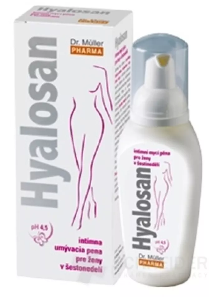 Sanfter Waschschaum mit Hyaluronsäure und Eichenrindenextrakt zur täglichen Pflege des Intimbereichs einer Frau im Alter von sechs Monaten.
