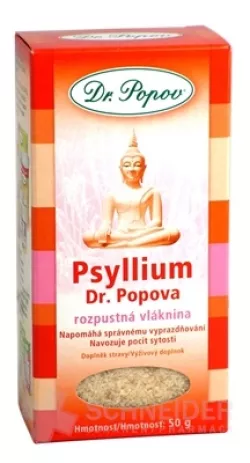 Flohsamen Dr. Popova (Plantago ovata) – Nahrungsergänzungsmittel, das den täglichen Ballaststoffverbrauch erhöht.