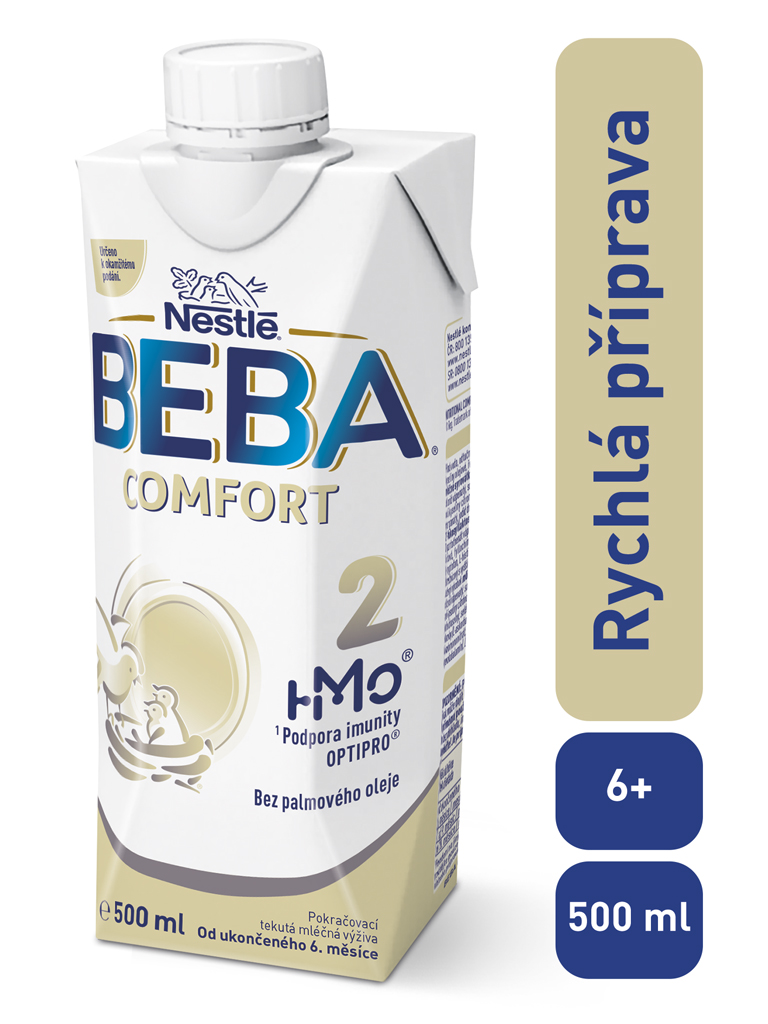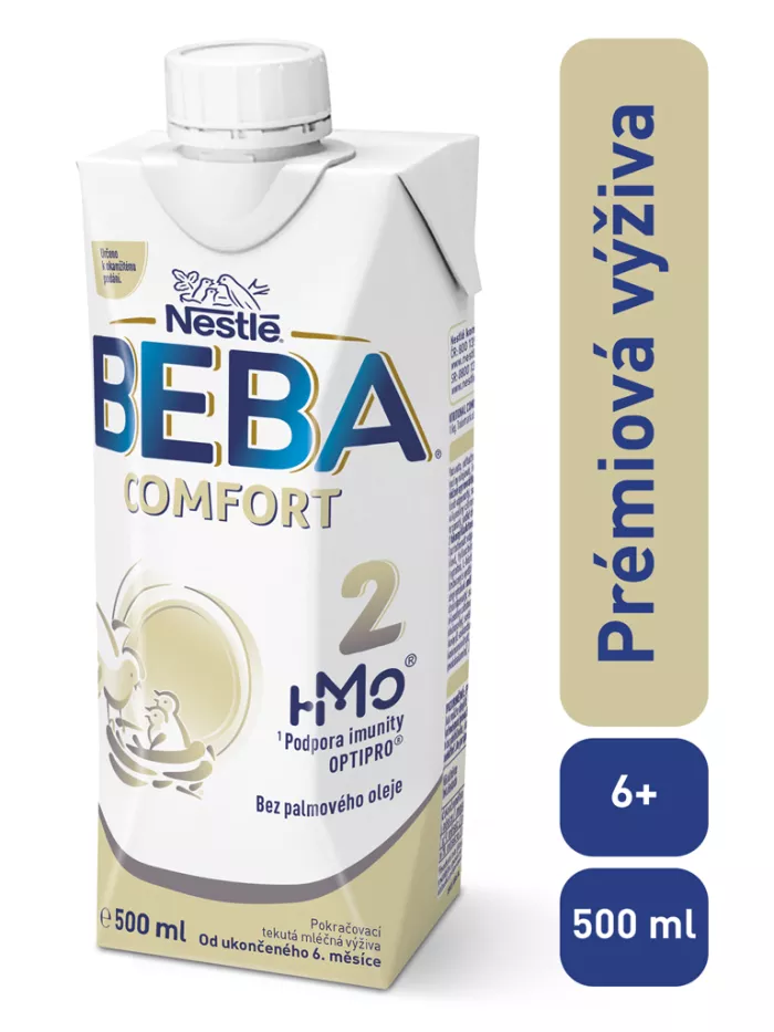 Flüssige Folgemilch-Säuglingsnahrung, ab Ende des 6. Monats. 500 ml, Tetrapack.