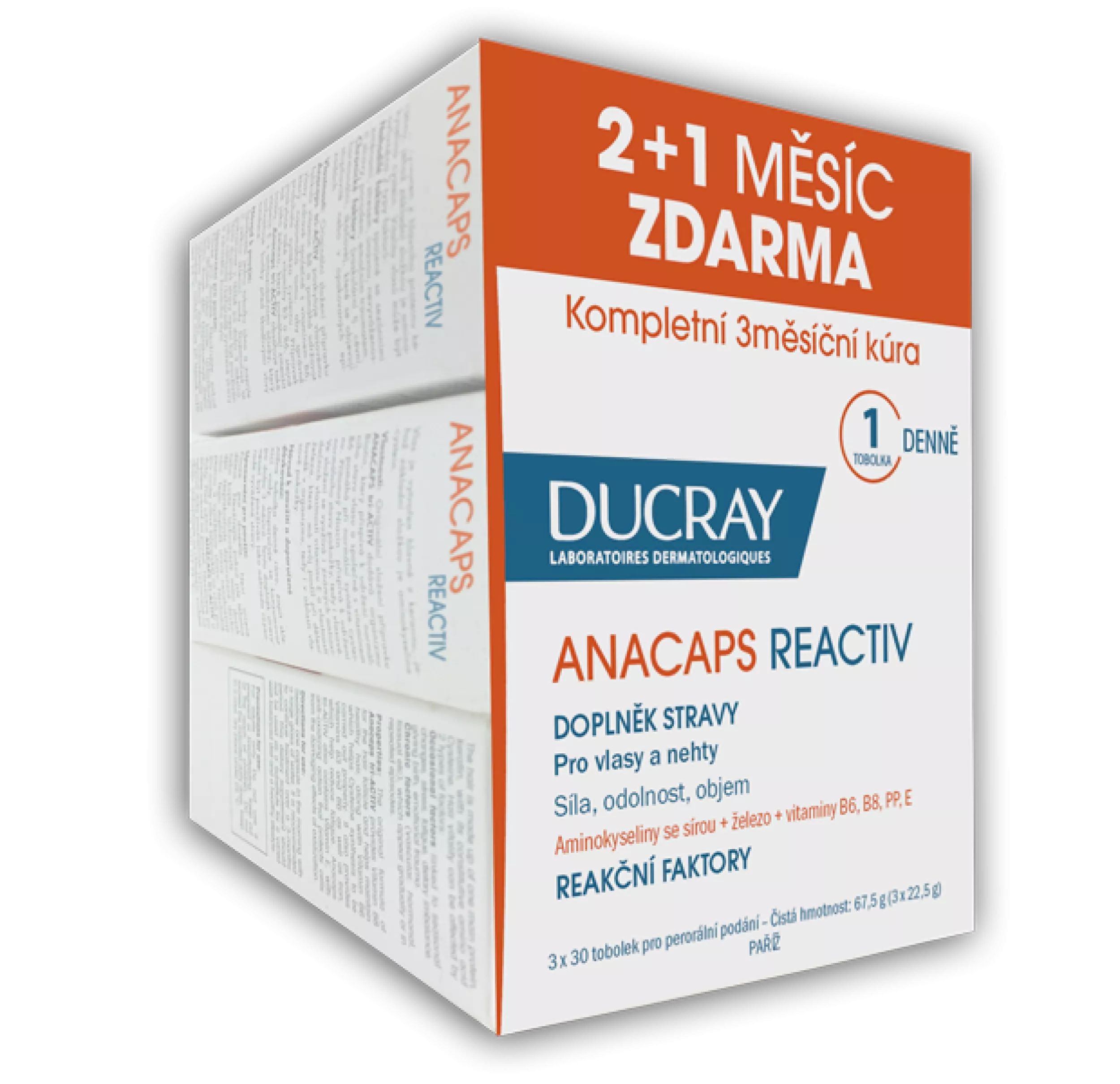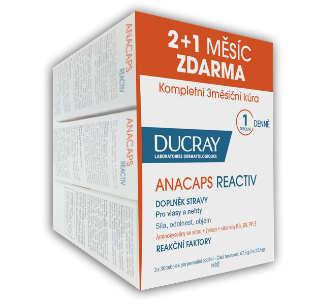 Die ursprüngliche Zusammensetzung von ANACAPS REACTIV versorgt den Haarfollikel mit Biotin, das zur Erhaltung gesunder Haare beiträgt, und Vitamin B6, das zur ordnungsgemäßen Synthese von Cystein beiträgt. Es liefert außerdem Vitamin B3 und Eisen, die zur Verringerung von Müdigkeit beitragen. ANACAPS REACTIV enthält außerdem Vitamin E, das zum Schutz der Zellen vor oxidativem Stress beiträgt.
