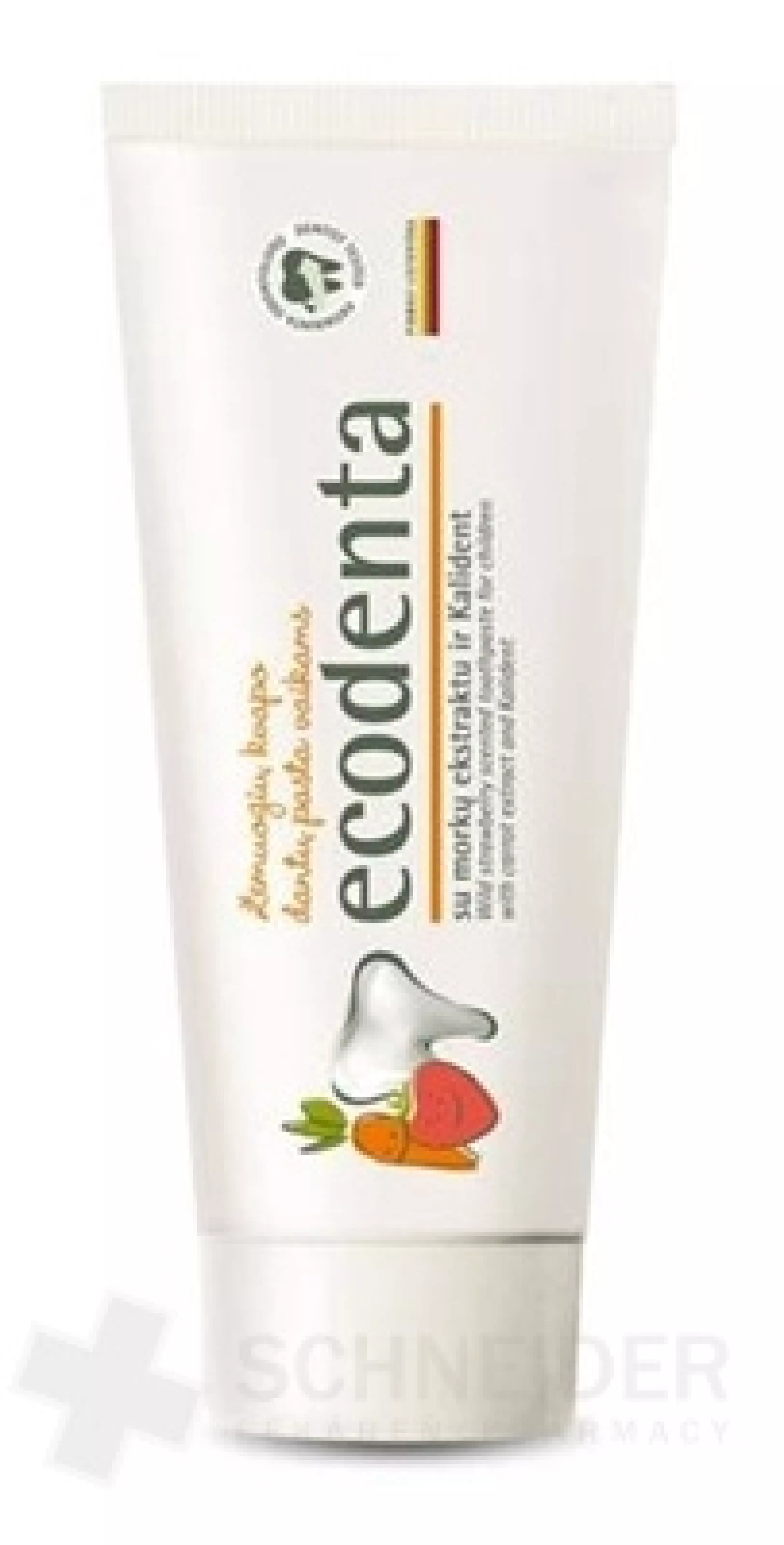 Zahnpasta für Kinder mit Walderdbeergeschmack, Karottenextrakt und Kalident.