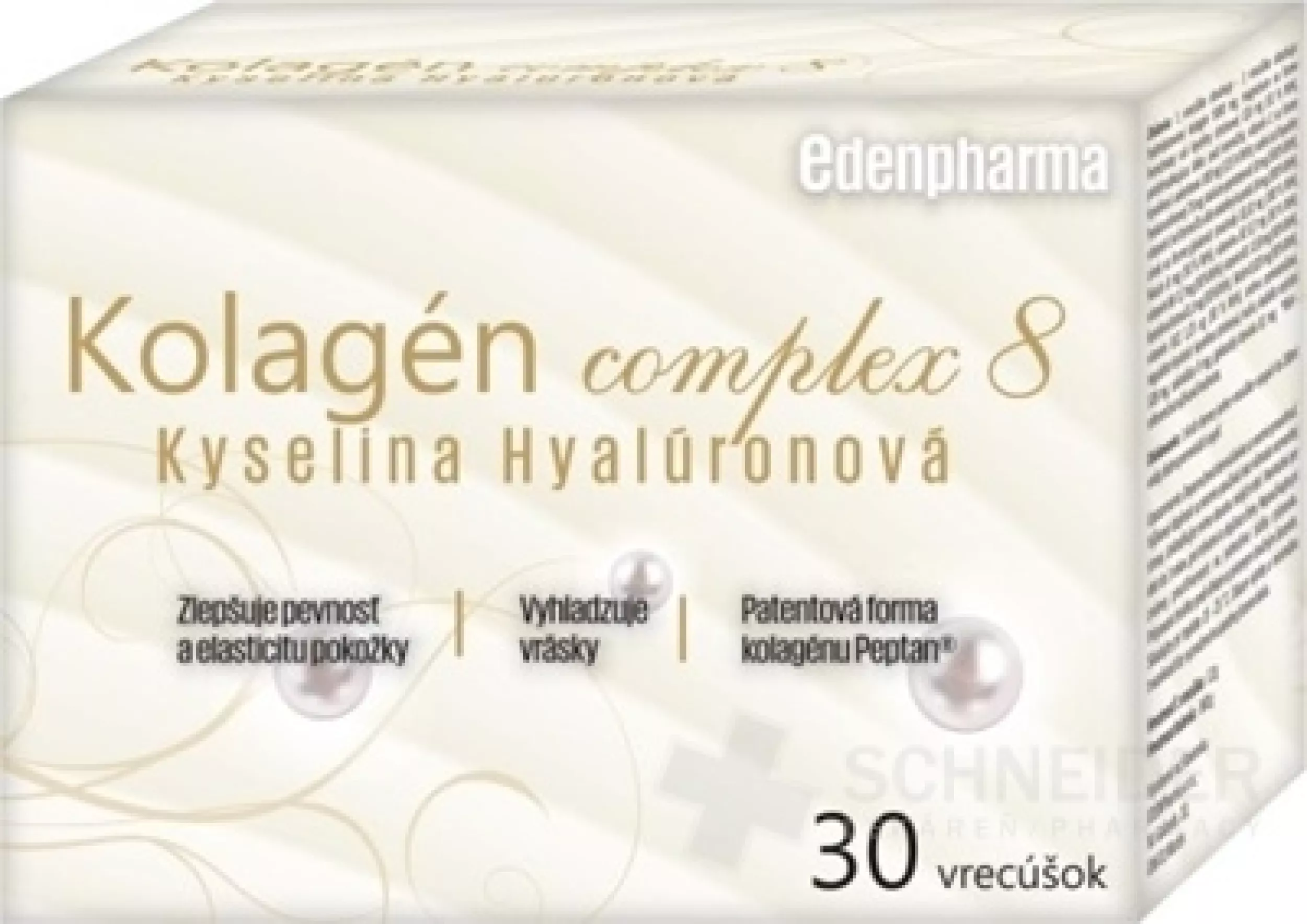 Nahrungsergänzungsmittel – Kollagengetränk mit Süßungsmitteln. Pulver in Beuteln. Es enthält hydrolysiertes Kollagen, das sogenannte Kollagenpeptide, Hyaluronsäure, Vitamine C, E und Vitamine der Gruppe B, Mineralien: Zink, Magnesium und Ballaststoff Inulin.