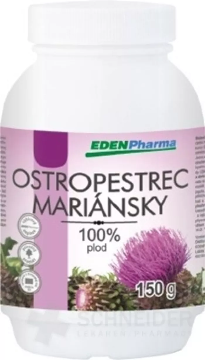 Nahrungsergänzungsmittel, Mariendistelfrüchte (Silybum marianum, Fructus cardui mariae) in granulierter Form. Es enthält keine Allergene, keine Konservierungsstoffe, Antioxidantien und Farbstoffe. Mehr unter adcc.sk
