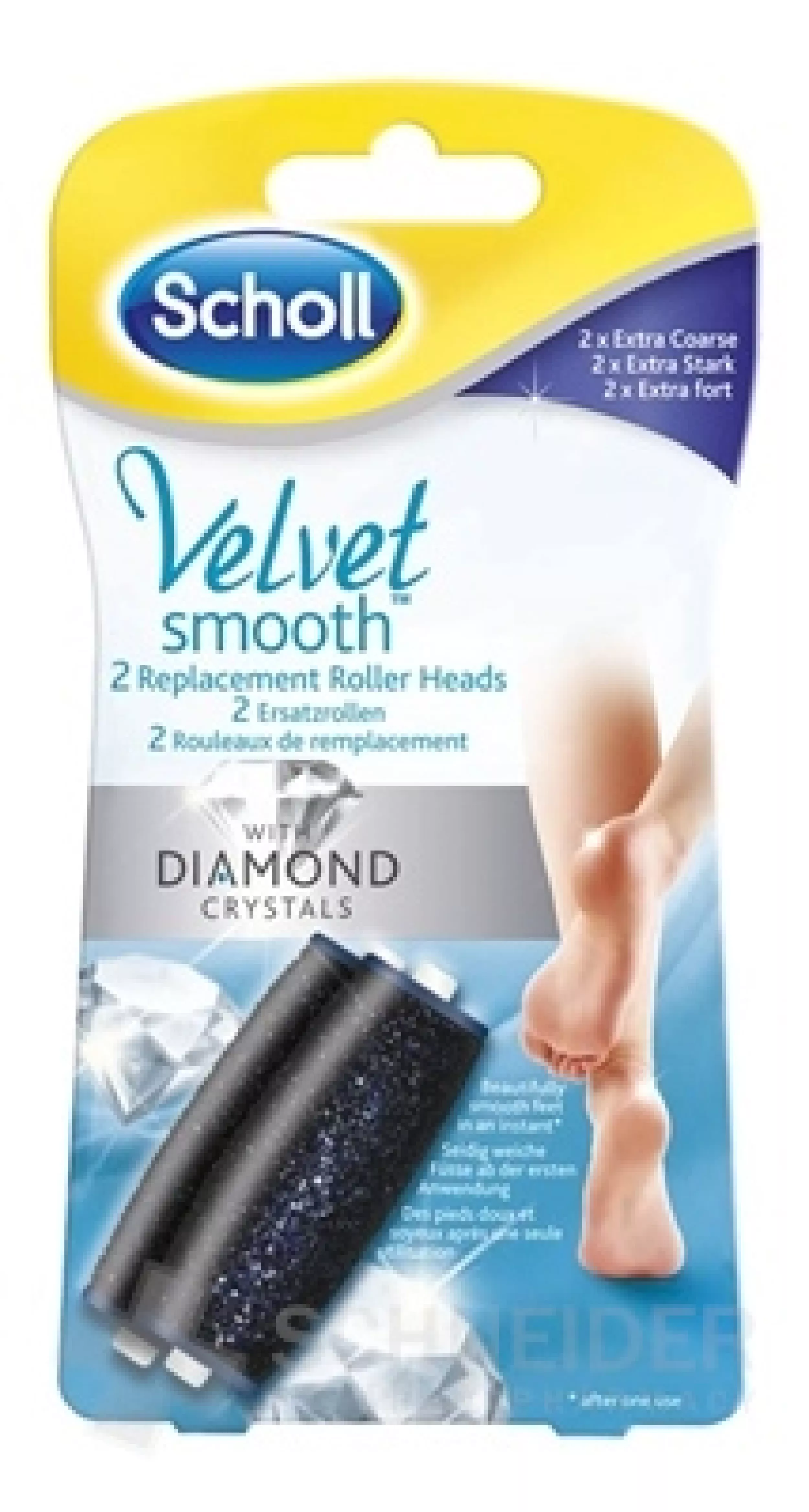Ersatz-Rotationsköpfe Scholl Velvet Smooth™ für elektrische Feilen mit fein gemahlenen Diamantkristallen*. Es funktioniert auch bei sehr harter, schwer zu entfernender Haut. Behandelt effektiv und dennoch sanft die Hornhaut an den Beinen.