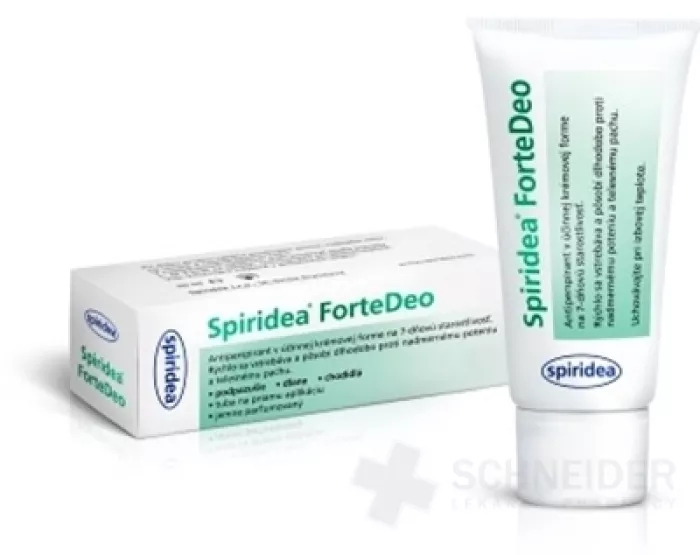 Antitranspirant in wirksamer Cremeform enthält den Stoff Aluminiumchlorhydrat, der gezielt übermäßiges Schwitzen vor allem in den Achselhöhlen, Handflächen und Füßen verhindert.