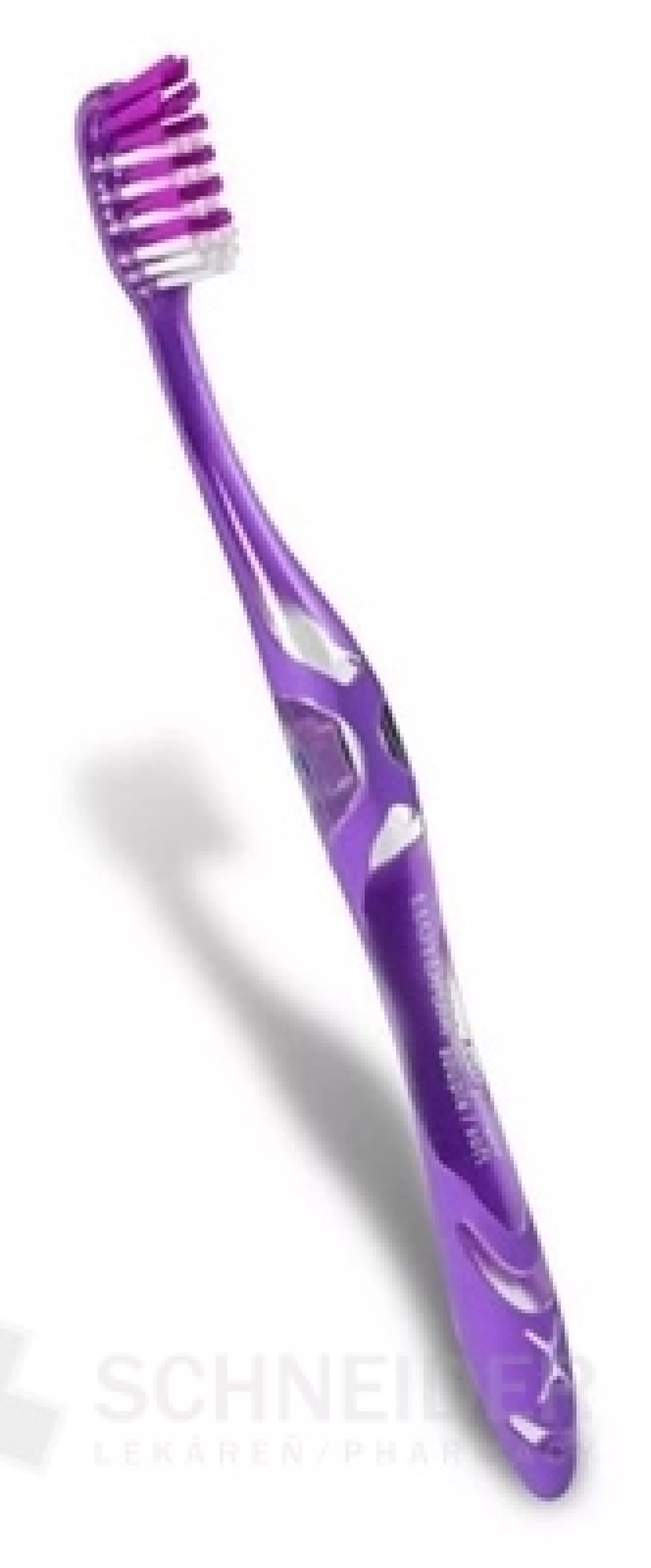 Die ELGYDIUM ANTI-PLAQUE Zahnbürste mit dem patentierten X-Fasersystem entfernt effektiv Zahnbelag, reizt das Zahnfleisch nicht...