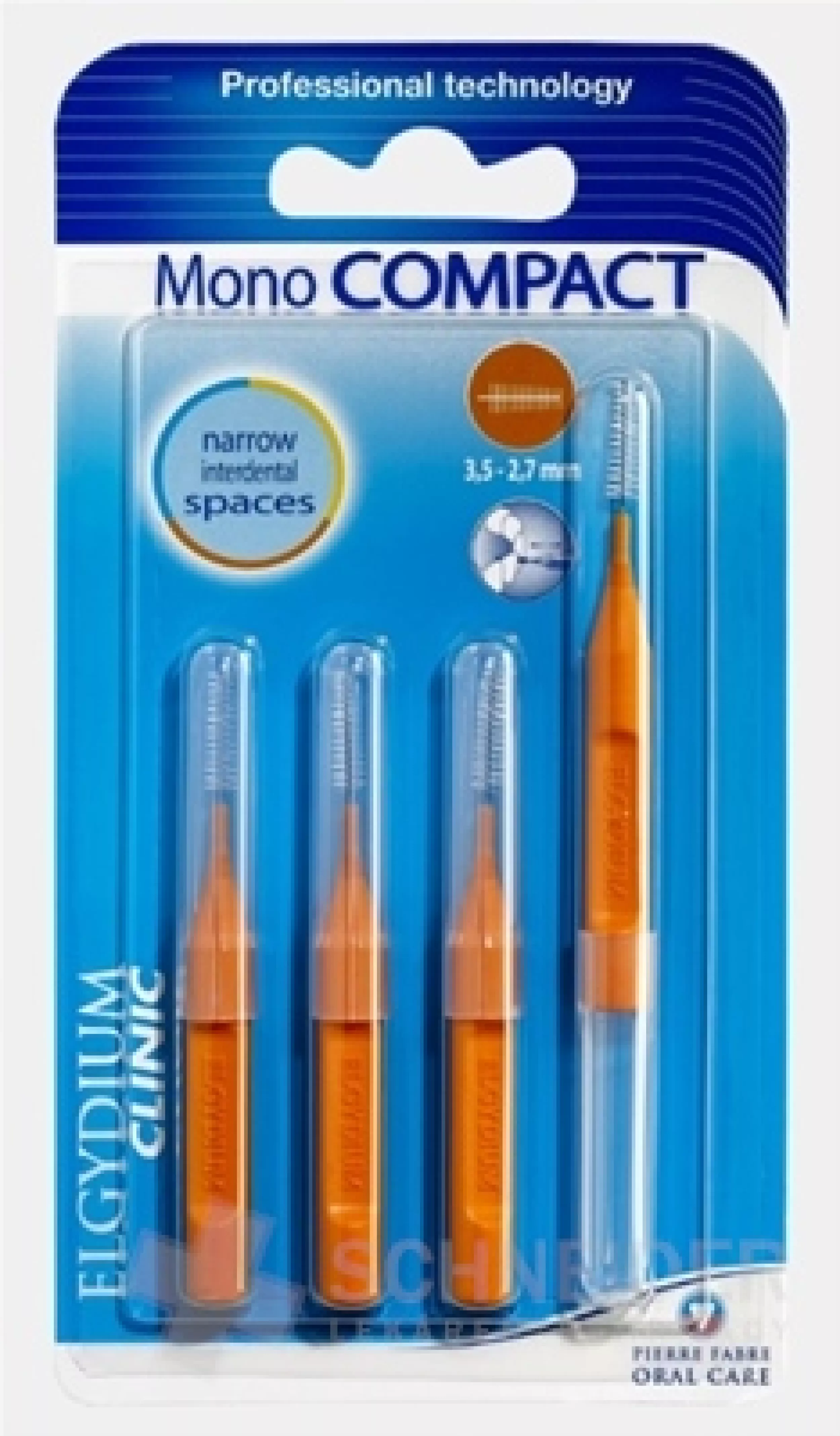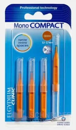 Interdentalbürsten ELGYDIUM CLINIC MONO COMPACT schmal 3,5-2,7 mm (orangefarbener Griff) eignen sich dank dünner Drähte und hochwertiger Tynex®- Fasern zur Reinigung schwer zugänglicher Stellen.