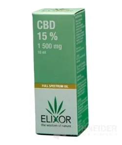 Hanföl mit einem natürlichen Gehalt an CBD (Cannabidiol) in einer Konzentration von 15 % enthält außerdem weitere Bestandteile der Hanfpflanze und MCT (Kokosöl) in Lebensmittelqualität.