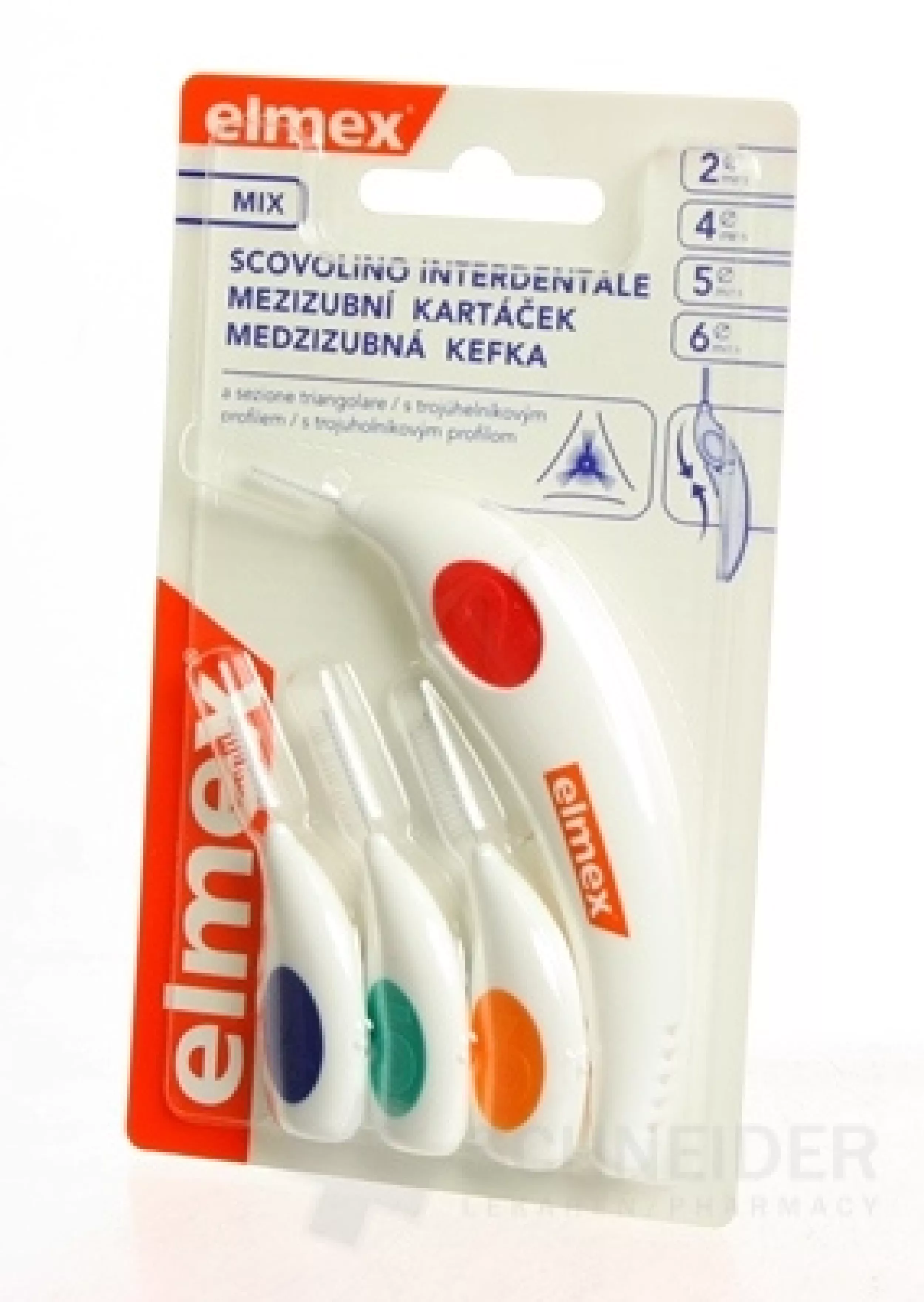 Interdentalbürste mit dreieckigem Querschnitt und ergonomischem Griff. Die Packung enthält eine Mischung aus Pinseln in den Größen 2, 4, 5 und 6.