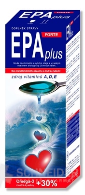 Nahrungsergänzungsmittel EPAplus FORTE aus einer Mischung aus hochwertigem Pflanzenöl und einem erhöhten Anteil an Meeresfischöl. 30 % stärker als EPAplus Natural! Die Mischung enthält Vitamin D (Cholecalciferol), wird mit Provitamin A-Beta-Carotin und Vitamin E (DL-α-Tocopherylacetat) ergänzt. Der Grundbestandteil des Präparats sind ungesättigte Fettsäuren.