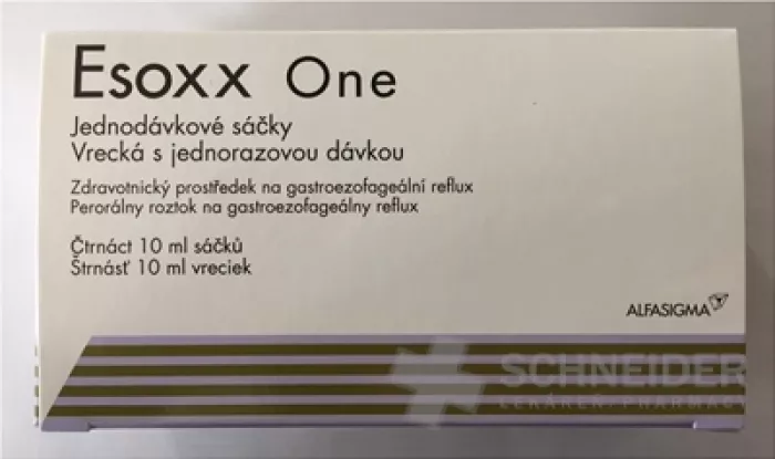 Das Präparat ist eine Kombination aus Hyaluronsäure und Chondroitinsulfat mit einem originellen und innovativen Wirkmechanismus zum Schutz der gastroösophagealen Schleimhaut. ESOXX® ONE enthält eine Komponente mit hoher bioadhäsiver Fähigkeit (Poloxamer 407), die die Stabilität des Kontakts zwischen Hyaluronsäure – Chondroitinsulfat und der Oberfläche der Speiseröhrenwand erhöht und zur Schutzwirkung gegen die Wirkung der in der Speiseröhre gebildeten Salzsäure beiträgt Magen. Chondroitinsulfat unterstützt die Heilungsprozesse der gastroösophagealen Schleimhaut.
