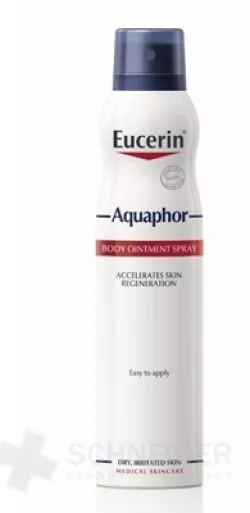 Körpersalbe im Spray. Es hilft, sehr trockene, gereizte Haut zu schützen und zu beruhigen. Es lässt sich auch problemlos auf größere Körperbereiche auftragen.