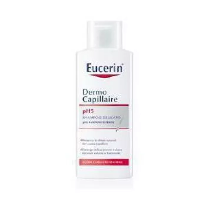 Gesunde Haut hat einen pH-Wert von 4,5 bis 5,5 und ist daher leicht sauer. Dieser natürliche Säuregehalt schützt die Haut vor schädlichen Bakterien und negativen Stoffen. Wenn dieses Gleichgewicht gestört ist – zum Beispiel durch Hitze, Kälte, Krankheit, ungeeignete Kosmetikprodukte oder aufgrund von Stress – kann die Folge eine empfindliche Kopfhaut sein. Eucerin DermoCapillaire pH5 Haarshampoo für empfindliche Haut wurde speziell entwickelt, um den natürlichen pH-Wert der Haut zu erhalten und Haar und Kopfhaut effektiv zu reinigen, ohne sie auszutrocknen und zu reizen. Außerdem entfernt es Schmutz, Pollen und Allergene aus dem Haar und verleiht ihm gesunden Glanz, Geschmeidigkeit und Elastizität.