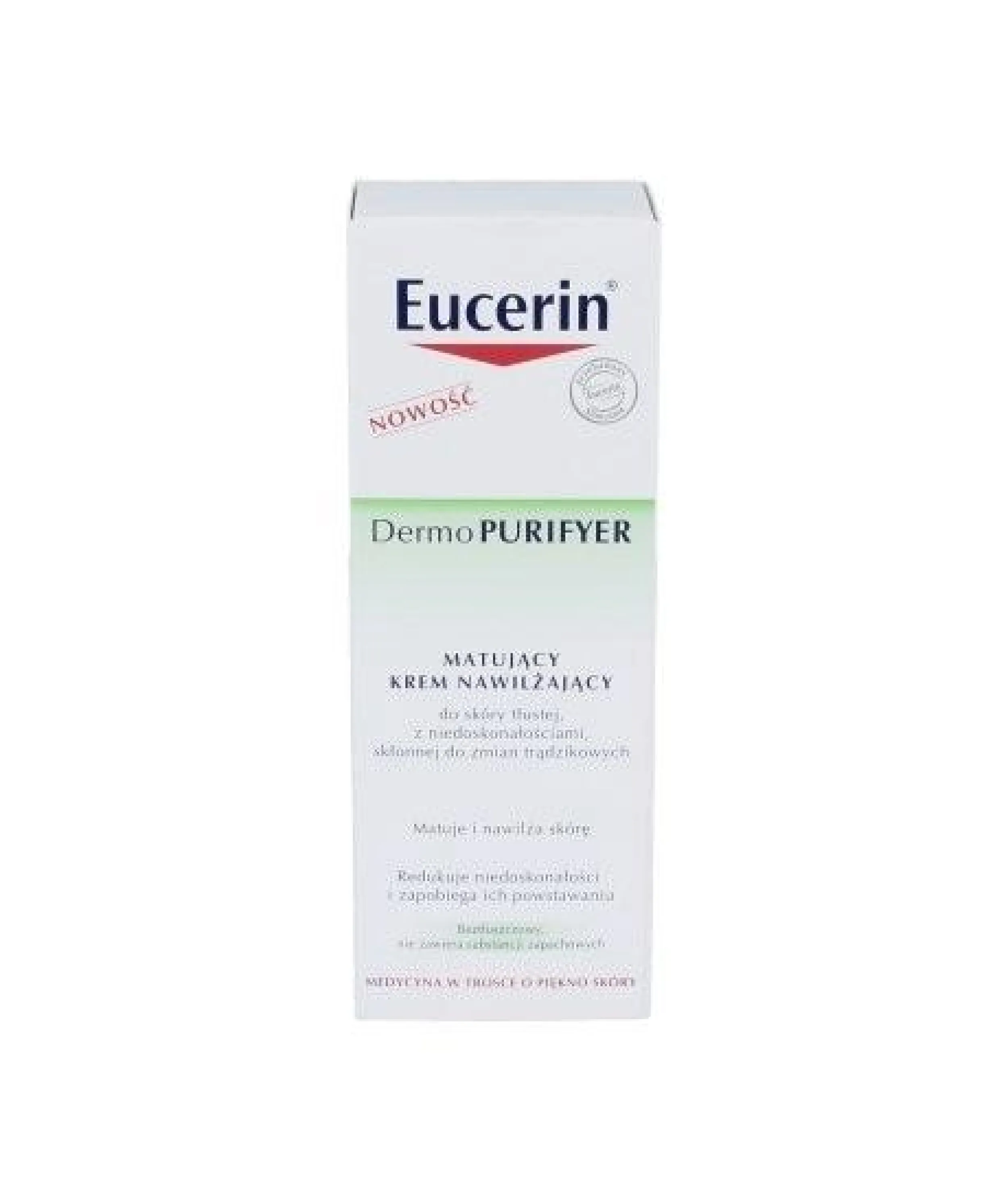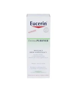 EUCERIN DermoPURIFYER Mattifying Day Cream versorgt die Haut optimal mit Feuchtigkeit und wirkt dank der einzigartigen Wirkstoffkombination 3-fach gegen Hautunreinheiten. Licochalcon mit entzündungshemmender Wirkung behandelt entzündete Stellen und beruhigt die Haut; Decandiol wirkt antibakteriell und hilft, Hautirritationen vorzubeugen, und Carnitin reguliert eine übermäßige Talgproduktion. Bei regelmäßiger Anwendung wird die Haut in nur 4 Wochen sichtbar mattierter und glatter.