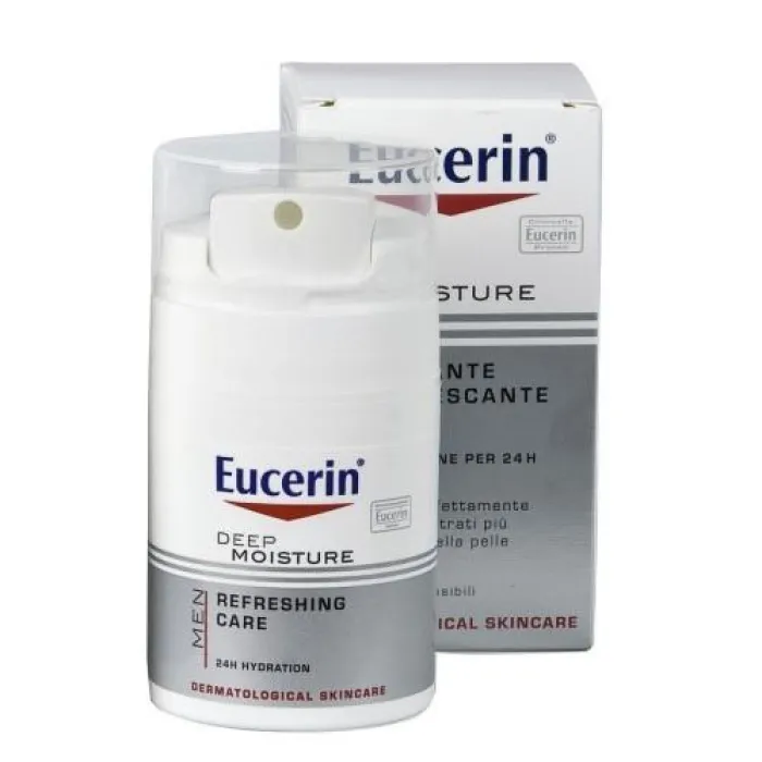 Die EUCERIN MEN DEEP Moisture Deep Feuchtigkeitscreme versorgt Männerhaut 24 Stunden lang mit optimaler Feuchtigkeit. Es enthält Glucoglycerin, eine Substanz, die die Bildung von Wasserkanälen (AQUAporin) anregt, die für die Wasserzirkulation in den Hautzellen unerlässlich sind. Die Haut ist nach dem Auftragen intensiv mit Feuchtigkeit versorgt, die Creme zieht schnell ein und hinterlässt keinen Fettfilm. Das Ergebnis ist eine gesunde, frische und optimal mit Feuchtigkeit versorgte Haut. Auch bei Patienten mit atopischem Ekzem wurde eine hohe Hautverträglichkeit klinisch bestätigt. Das Präparat ist klinisch und dermatologisch getestet und zugelassen.