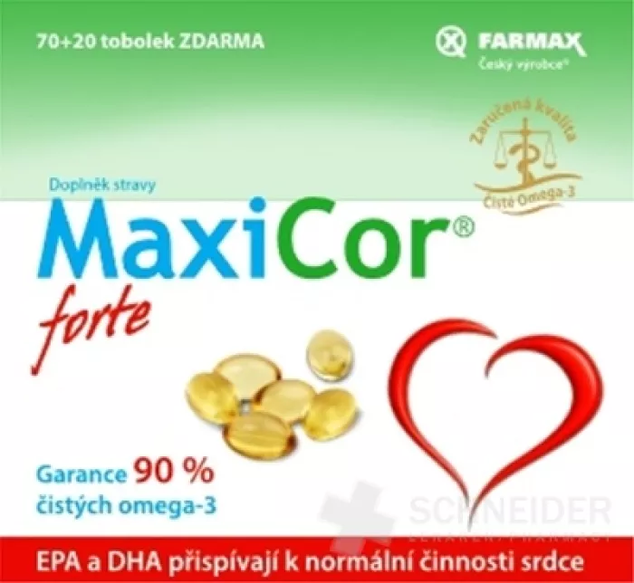 MaxiCor® forte enthält in der Kapsel min. 90 % ungesättigte Omega-3-Fettsäuren (in Form von Ethylestern), hergestellt durch Raffinierung von Öl aus ausgewählten Meeresfischarten.
