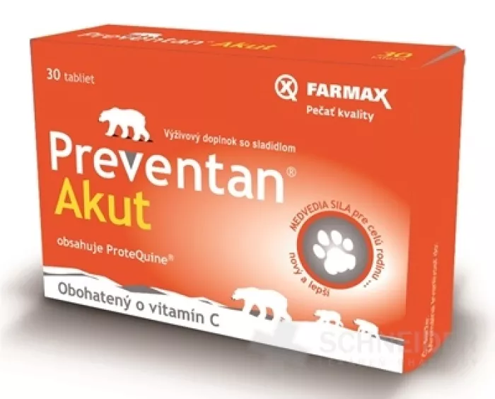 Eigenschaften: Preventan® Akut enthält den Originalwirkstoff ProteQuine® (Aminosäuren, Oligopeptide, Nukleotide) und Vitamin C, das zu einer normalen Funktion des Immunsystems und zur Verringerung von Müdigkeit und Erschöpfung beiträgt.
