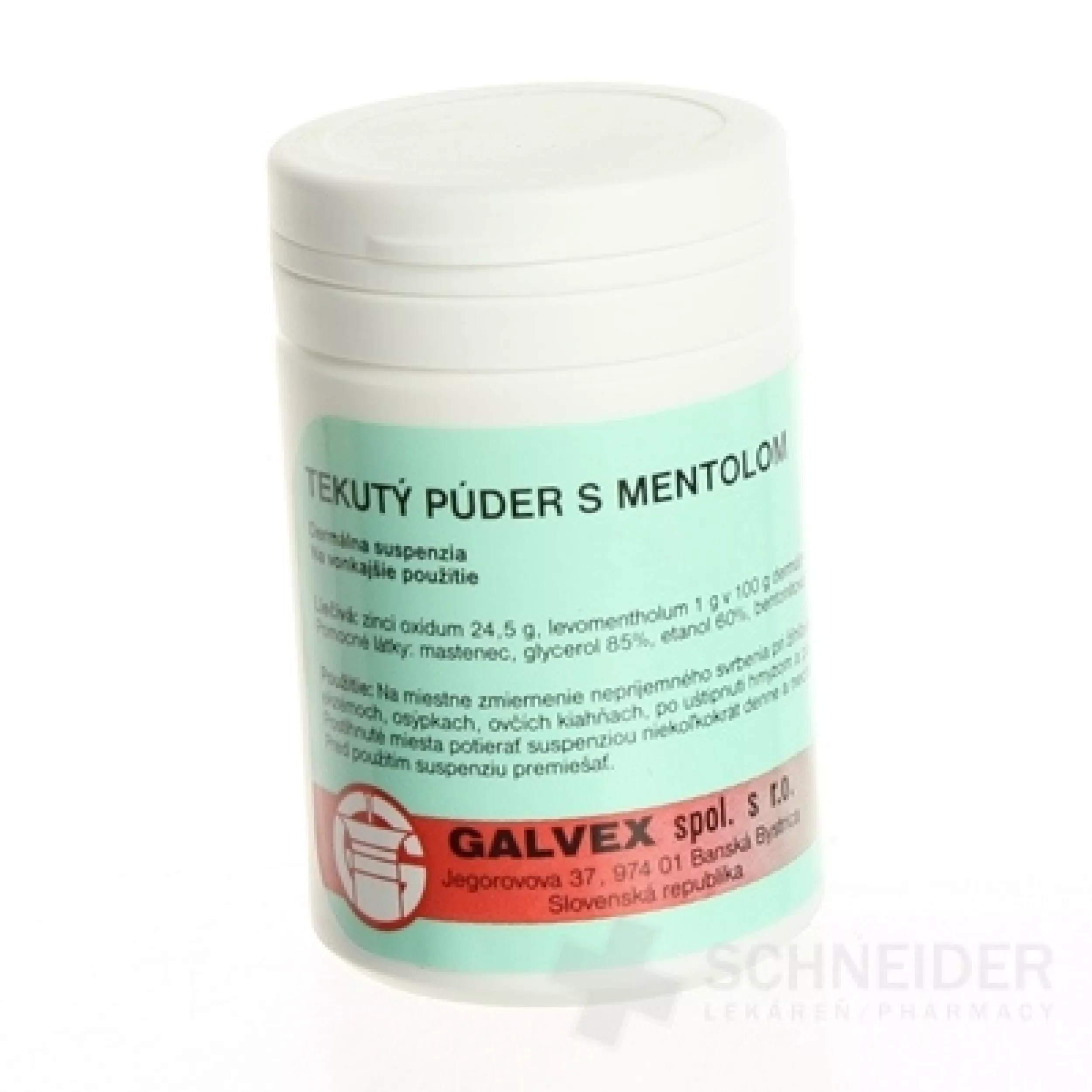 Ein Hilfsmedikament bei der Behandlung von akuter juckender, nicht nässender Dermatitis (Ekzem), Urtikaria, Insektenstichen und anderen Hauterscheinungen (Windpocken usw.). Suspension mit adstringierender, trocknender, entzündungshemmender, kühlender und juckreizstillender Wirkung.