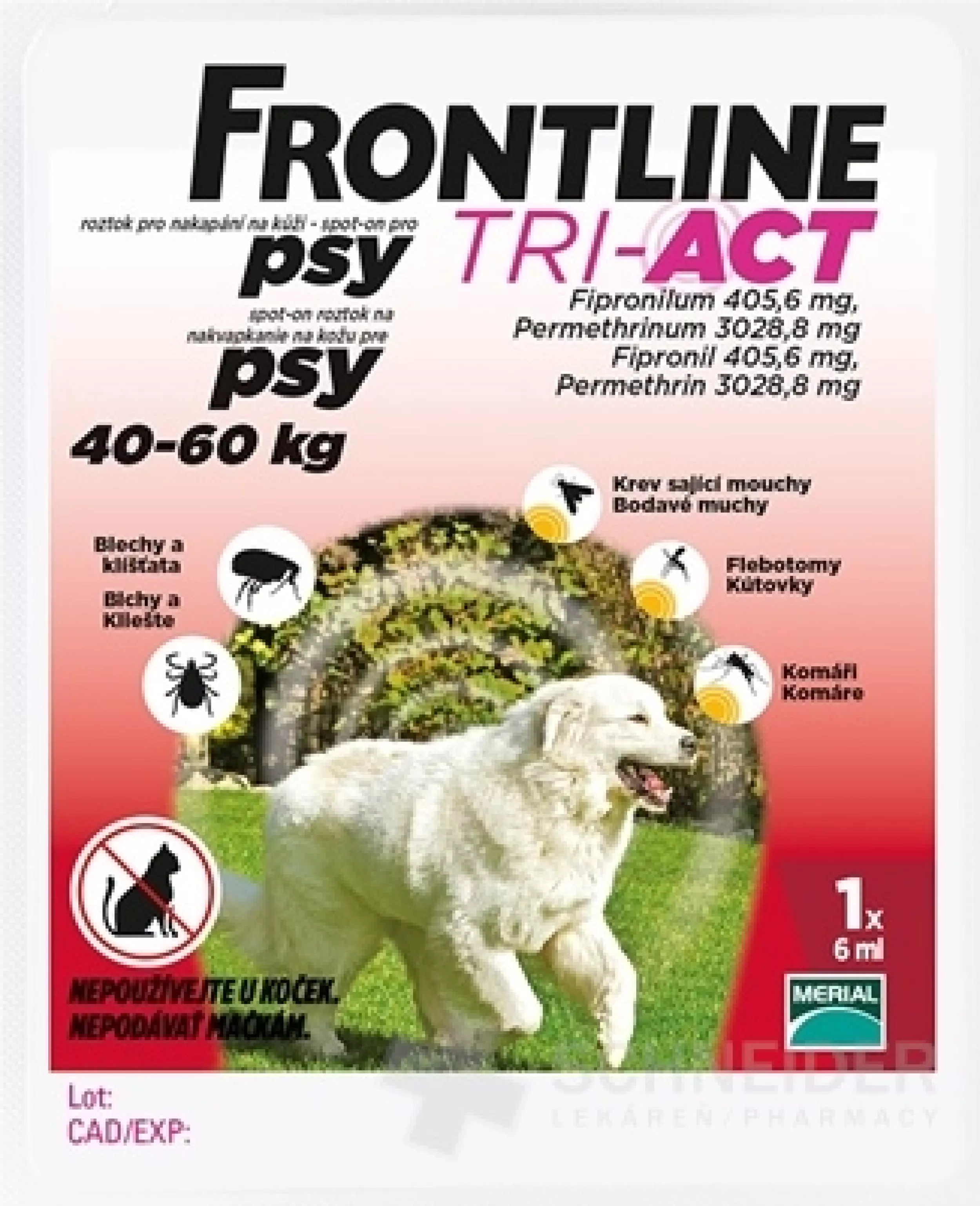 Das Medikament hat eine abweisende Wirkung (Verhinderung des Saugens) für 3 Wochen gegen Bettwanzen (Phlebotomus perniciosus) und für 4 Wochen gegen Mücken (Culex pipiens). Das Medikament hat auch eine insektizide Wirkung, die drei Wochen lang gegen Bettwanzen (Phlebotomus perniciosus) anhält.