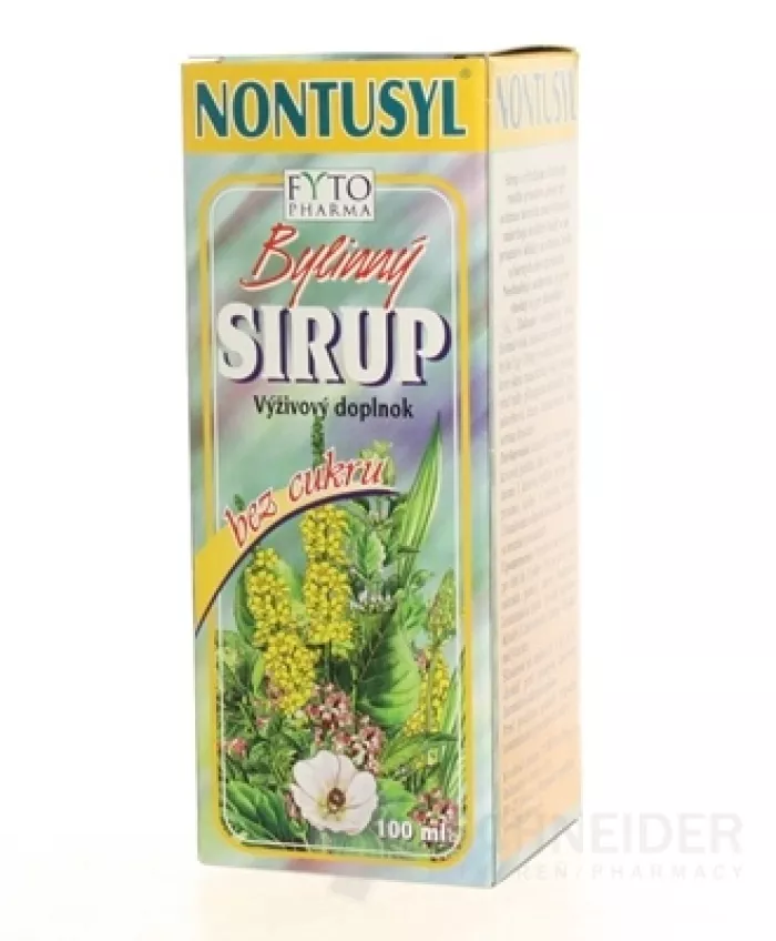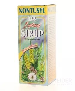 Sirup mit Pflanzenextrakt – konzentrierter Extrakt einer Kräutermischung 5 g in 100 g des Produkts (Lindenblüte, Hibiskuswurzel, Honigtau, Raps, Thymian, Schöllkrautblatt), Säure. Ascorbinsäure,