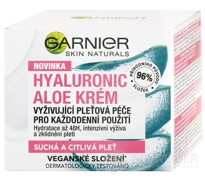 Die Creme stellt eine nährende Pflege dar und spendet der Haut bis zu 48 Stunden Feuchtigkeit. Enthält Bio-Aloe Vera, verstärkt mit Hyaluronsäure, deren Zusammensetzung zu 96 % natürlichen Ursprungs ist. Geeignet für trockene und empfindliche Haut. Vegane Zusammensetzung.