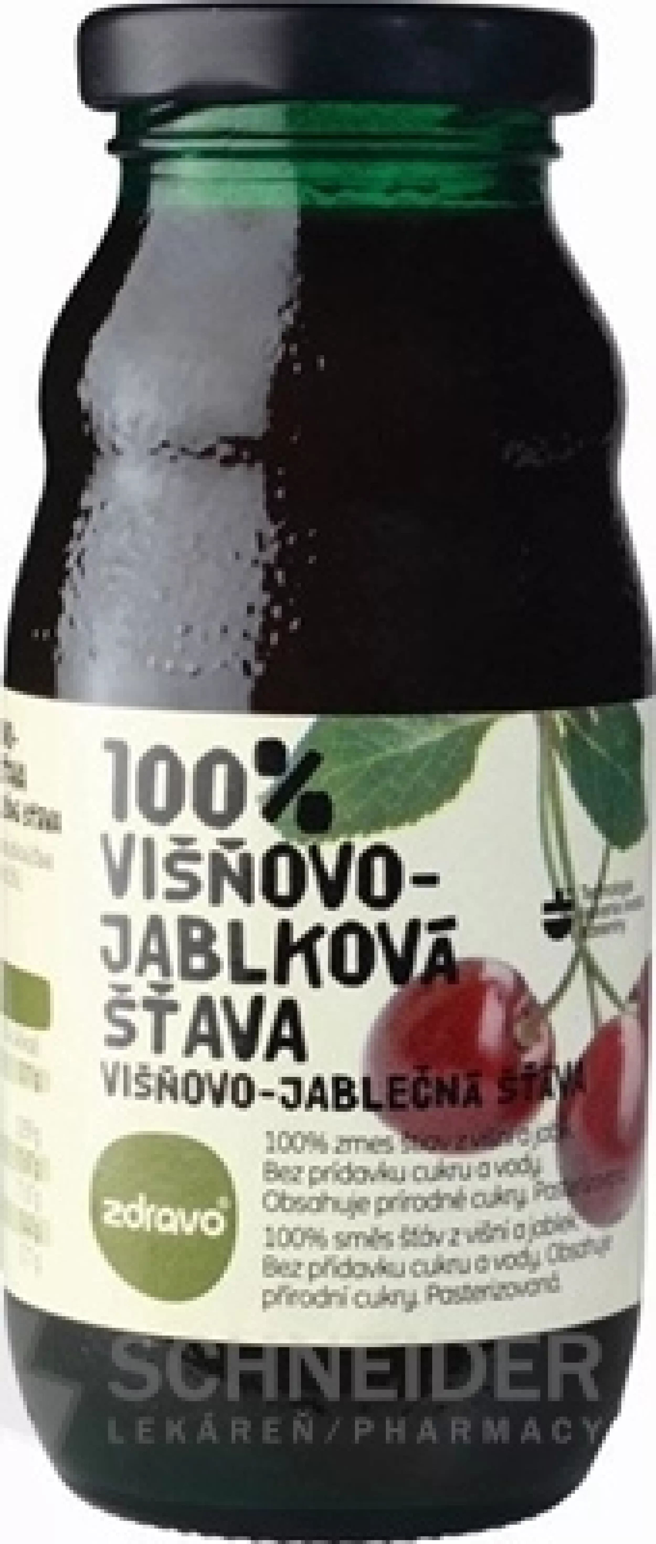 100 % Mischung aus Säften aus Sauerkirschen und Äpfeln. Ohne Zusatz von Zucker und Wasser. Enthält natürlichen Zucker. Pasteurisiert.
