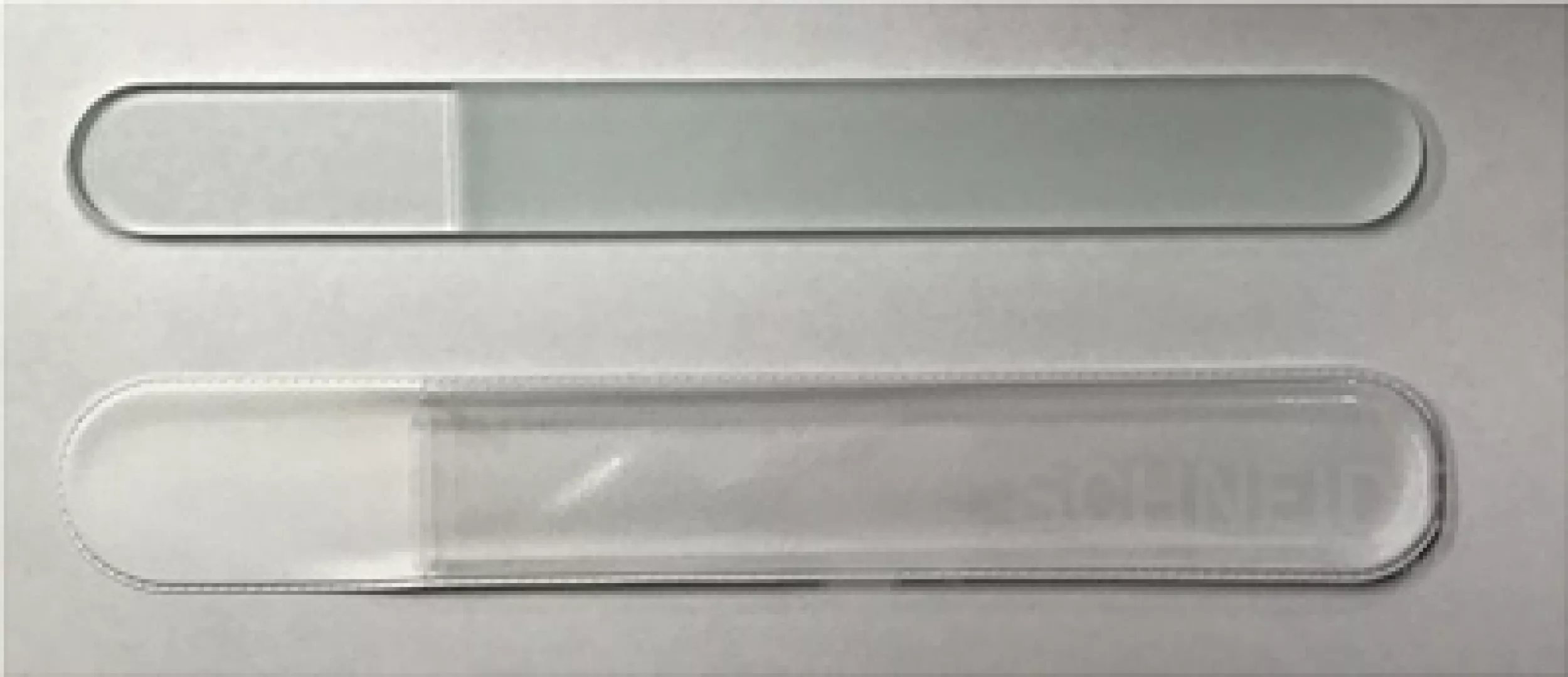 Doppelseitige Glasfeile im Kunststoffkoffer. Zur Nagelbehandlung.