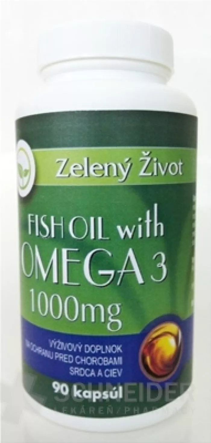 Nahrungsergänzungsmittel Zelený Život FISCHÖL mit OMEGA 3, das Fischöl enthält, das eine Quelle für Omega-3-Fettsäuren ist.