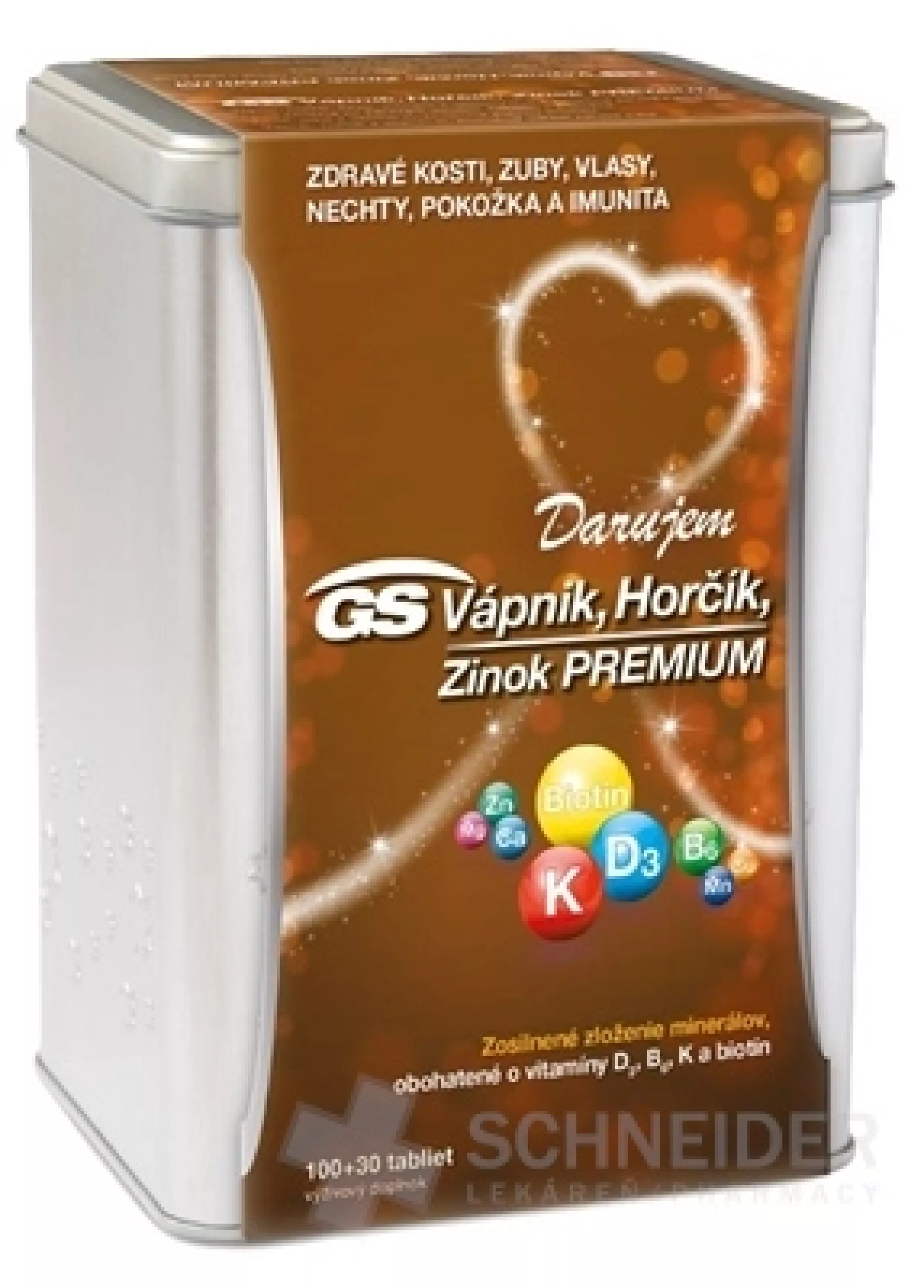 Nahrungsergänzungsmittel GS Calcium, Magnesium, Zink Premium enthält eine erhöhte Menge an Mineralien, angereichert mit den Vitaminen D3, B6, K1 und Biotin.