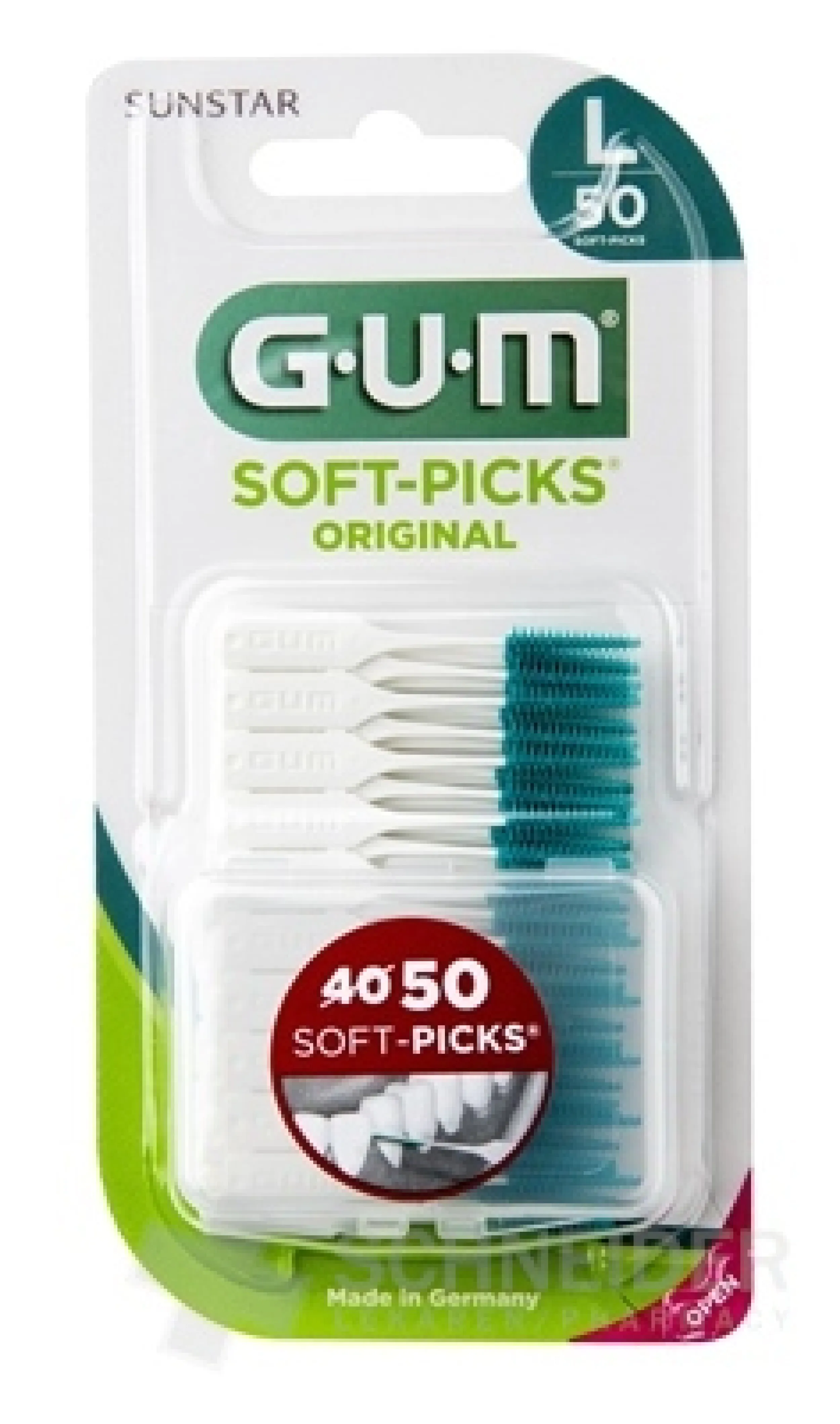 Interdentalbürsten und Zahnstocher aus Kunststoff in einem. Mit weichen Gummiborsten, die Zahnbelag und Speisereste sanft entfernen. Sie enthalten Natriumfluorid.
