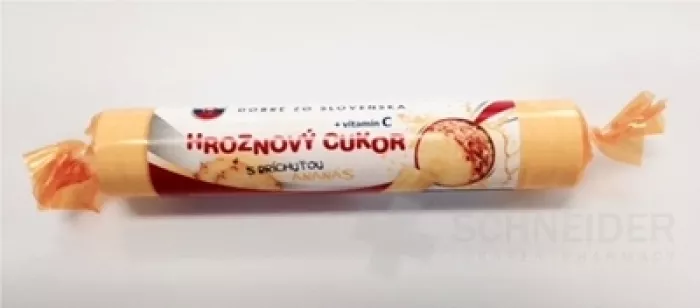 Nahrungsergänzungsmittel, Traubenzucker mit Ananasgeschmack und Vitamin C-Gehalt. Enthält keine Farbstoffe.