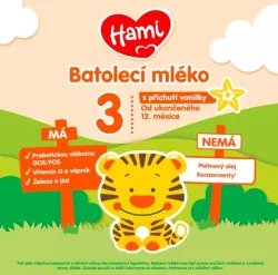 Hami 3 Babymilch mit dem beliebten Vanillegeschmack verfügt über eine OptiNutri-Zusammensetzung mit GOS/FOS-Ballaststoffen, die genau auf die Bedürfnisse des Kindes abgestimmt ist. Es versorgt das Baby mit den notwendigen Vitaminen und Mineralstoffen, um seine natürliche Entwicklung zu unterstützen*.