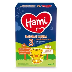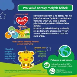 Babymilch Hami 3 Für eine gute Nacht verfügt über eine OptiNutri-Zusammensetzung mit GOS/FOS-Ballaststoffen, die genau auf die Bedürfnisse des Kindes abgestimmt ist. Es versorgt das Baby mit den notwendigen Vitaminen und Mineralstoffen, um seine natürliche Entwicklung zu unterstützen*. Darüber hinaus enthält die Milch Reismehl, wodurch sie dichter ist als normale Babymilch (bei gleichem Energiewert). Es empfiehlt sich, vor dem Zubettgehen als letzte Abendflasche Milch zu geben.