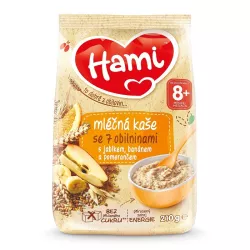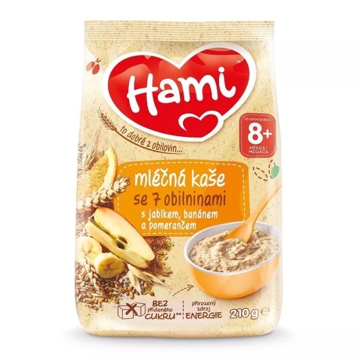 Getreidebasierte Nahrung in Pulverform für Säuglinge und Kleinkinder ab dem 8. Monat. Hami-Milchbrei ist eine gute Wahl zum Abendessen oder Frühstück.