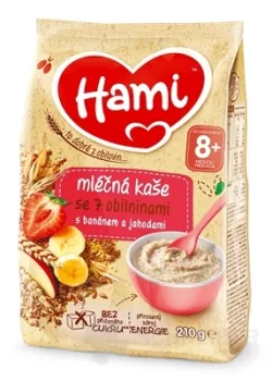 Getreidebasierte Nahrung in Pulverform für Säuglinge und Kleinkinder ab dem 8. Monat. Hami-Milchbrei ist eine gute Wahl zum Abendessen oder Frühstück.