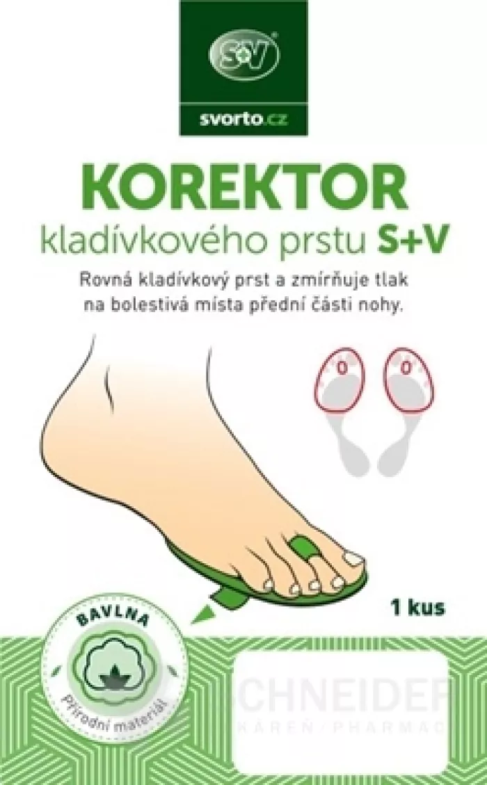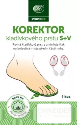 Der Hammerzehen-Korrektor 1, dessen Kissen aus weichem, flexiblem Latexschaum besteht und mit Baumwollstoff überzogen ist, entlastet schmerzende Stellen im vorderen Teil des Fußes. Am Kissen ist ein Riemen aus einem breiten, weichen Gummiband befestigt, der um die zweite oder dritte Hammerzehe gelegt wird. Durch Ziehen am freien Ende des Gummibandes wird die Ausrichtung des Fingers erreicht.