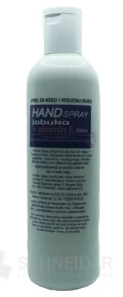 Sprühflüssigkeit zur Desinfektion, Hygiene und Handpflege, mit Apfelaroma und Vitamin E.