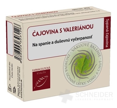 Zusammensetzung: Geißblatt (Herba melissae 40 %), Hopfenzapfen (Strobuli lupuli 25 %), Baldrianwurzel (Radix valerianae 20 %), Minze (Herba menthae 15 %).