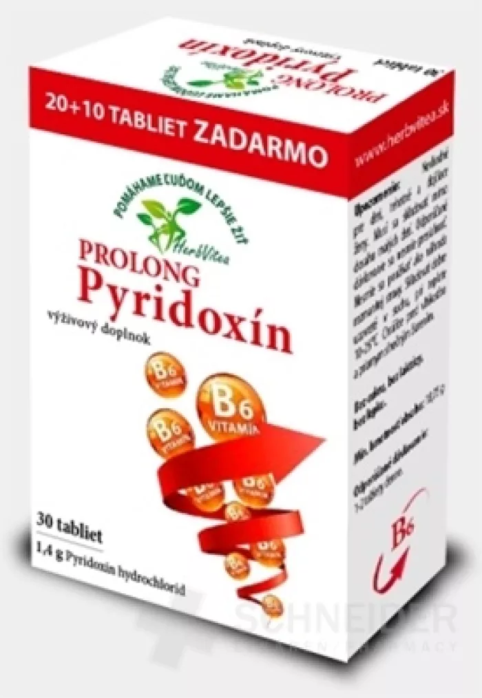 Nahrungsergänzungsmittel, Pyridoxin 1,4 g in Retardtabletten. Kein Zucker, keine Laktose, kein Gluten.